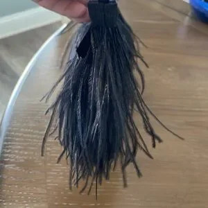 Unique Design & Materials: The bag is described as an "elegant black clutch with feather detailing," featuring luxurious ostrich feathers and a satin chain.