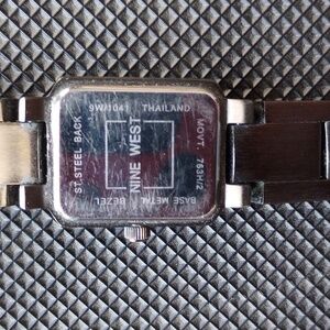 Rectangular face with minimalist design. Original box and instructions included. Needs new battery.