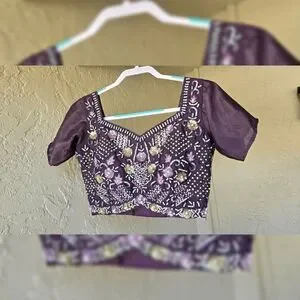 purple lehenga featuring intricate embellishments in a rich purple hue. Perfect for special occasions.