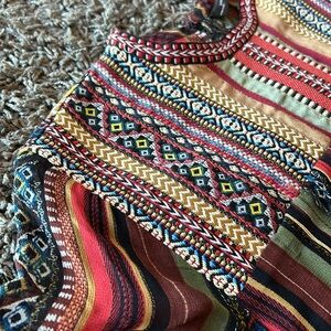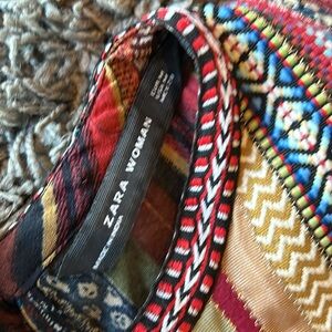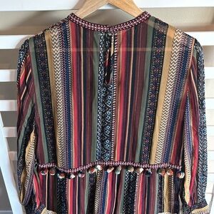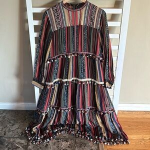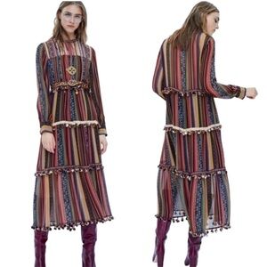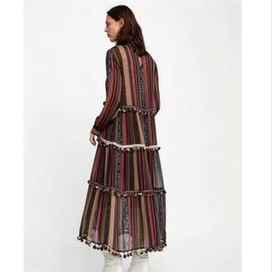 Zara Multicolor Pom Pom Trim Tiered Boho Maxi Dress Size Medium