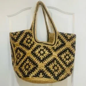 Free People Hand Woven Jute Tote Bag