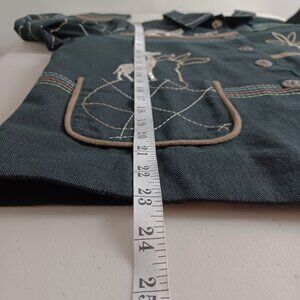 A unique artistic jacket in black with multi-coloured patterns. Made from durable cotton twill fabric and fully lined. It has a captivating safari theme with textured appliques and embroidery on both the front and back. Excellent condition. Features: Casual, daily, fashion, city, leisure Relaxed fit Button closure Front pockets Decorative embroidery Safari animal appliques Fully lined 100% Cotton Size: M Petite (Fits more like Large) Approx. flat-lay measurements: Shoulders 17" Bustline 22" Sleeve (from shoulder seam) 22" Length 23" **New to Poshmark? GET $15 OFF your first purchase when you sign up and use my code SUITYOURSTYLE