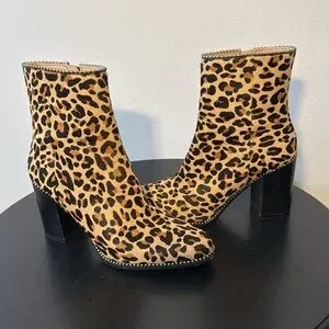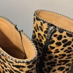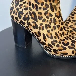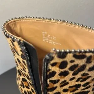Coach Drea Bead Chain Leopord Print Genuine Calf Hair Leather Booties