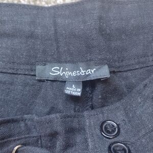 Super cute charcoal black pants. These have a great texture and dainty silver detail. Size L
