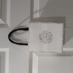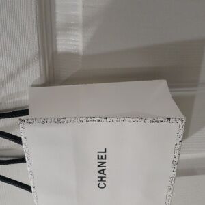 Shop this authentic Chanel white and black small paper shopping gift bag featuring the iconic Camellia flower design and black rope handles. Perfect for gifting, luxury storage, or collectors, this 5.5x6.25x3” bag is in excellent used condition. It is ideal for designer packaging or décor. Ships securely and quickly!