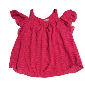 Anthropologie Maeve Size 14 Magenta Gingham Top Cold Shoulder Micro Plaid Flutter Sleeve Pink Mauve Spring Summer Lightweight Bohemian Vintage Style Y2K