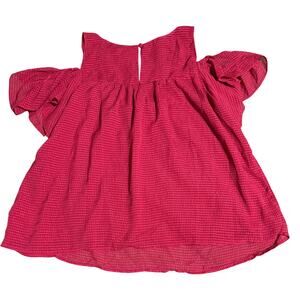 Anthro Maeve SZ 14 Magenta Gingham Top Cold Shoulder Micro Plaid Flutter Sleeve
