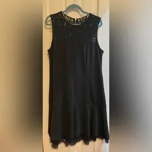 Black sleeveless dress with lace at the top and bottom of the dress. Perfect for black tie event. very flattering dress.