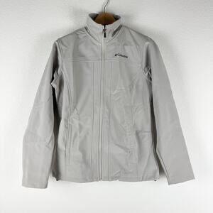 Columbia Full Zip Lined Jacket Women's Size Small Light Gray Beige Soft Shell
