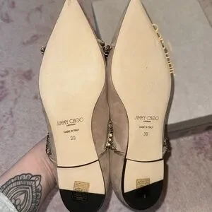 In excellent condition, with minimal wear from trying on. Small scuff on one of the toes, refer to last photo, but other than that they are like new. These are such a beautiful, fun and timeless pair of shoes and would be a great addition to any wardrobe. They come with a dust bag and in a Jimmy Choo box.