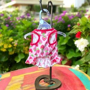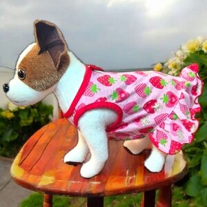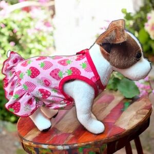 Whether it's a casual stroll in the park or a special event, this doggy dress will have your pup looking adorable and chic. The vibrant strawberry print will add a pop of color to their wardrobe while keeping them comfortable throughout the day.