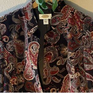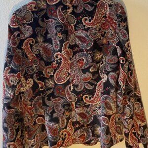 Talbots Blazer Velvet Jacket Size 10 Paisley Lined Cotton Silk Blend 1 Button