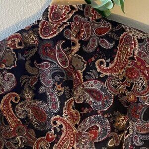 Talbots Blazer Velvet Jacket Size 10 Paisley Lined Cotton Silk Blend 1 Button Brown Tan Red