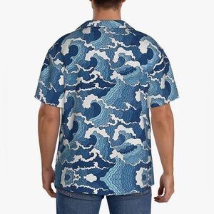 KYKU Men's Button Down Short Sleeve Shirt Tropical, Ocean Blue & White