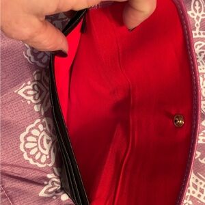 Stylish and elegant, this Dooney & Bourke wallet pink and black. In excellent used condition. Pebble leather.