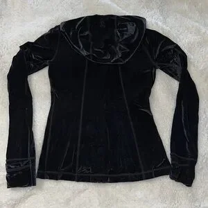 New - no tags but never washed or worn (rip tag removed because I’m horrible about doing this). Highly sought after hooded Define in black velvet. GORGEOUS gold hardware with details like the logo on the hood drawstrings and a stunning embroidered logo on the hood (like the Scuba jacket has).