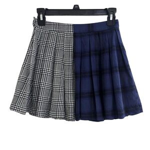 Forever 21 Dual Plaid Plaid Pleated Mini Skirt, XS
