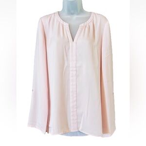 Lark & Ro Women's Size M Pink Long Sleeve Roll Tab V-neck Top Soft Classic