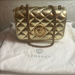 Authentic Versace Gold Quilted Leather Women's Bag