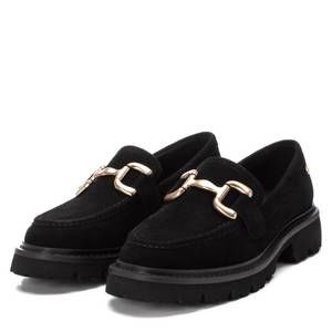 Elevate your footwear Carmela Collection with the Women's Leather Moccasins by Xti, designed in a sophisticated color. Crafted from high-quality split leather, these loafers ensure durability and a luxurious feel. The distinguishing antifaz front is accented with a metal chain, complemented by a thick, serrated non-slip sole for stability. Featuring a low heel height of 1.37", these moccasins offer chic style without compromising comfort.