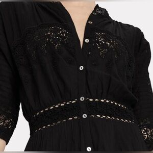 LoveShackFancy Beth Midi Dress Black Crochet Lace Trim Half Slip Size Medium