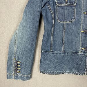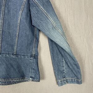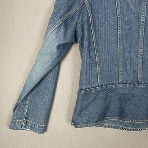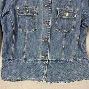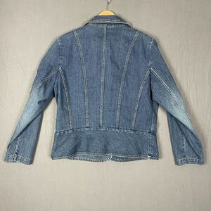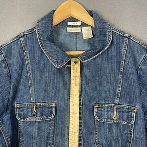 St. John's Bay Jacket Women's Large Blue Denim Stretch Long Sleeve Button Front.