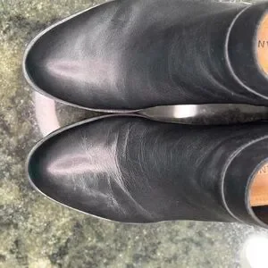 These Lucky Brand ankle booties feature a sleek, pointed toe and a smooth, polished black leather finish. The subtle curvature and slight opening at the ankle add a touch of elegance, making them perfect for formal or professional settings, or a night of line dancing.