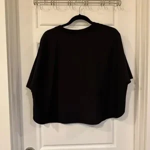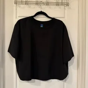 Stylish Old Navy black cropped shirt. Perfect for casual wear or working out since it is made with athletic material. Cute side swoop on the hemline. NWOT.