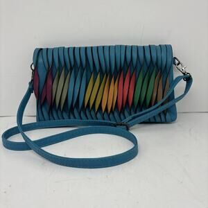 Mellow World Rainbow Twisted Crossbody Clutch Turquoise w/ Shoulder Strap - NICE