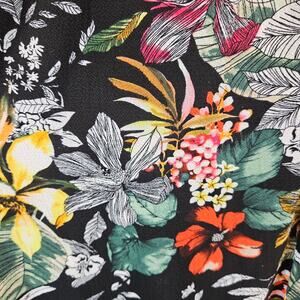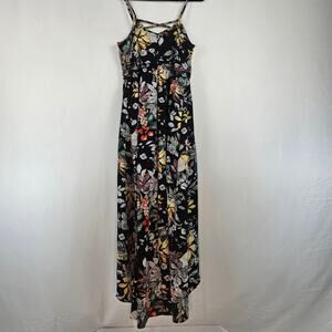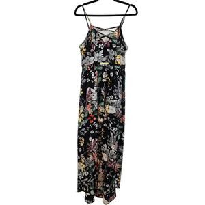 A. Calin Black Floral Stretch Shorts Romper w/ Open Front Maxi Overlay Dress L