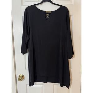 Belle by Kim Gravel Womens Hi-Low Tunic 2X Black Keyhole Trim Classic Statement