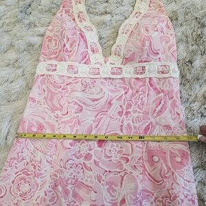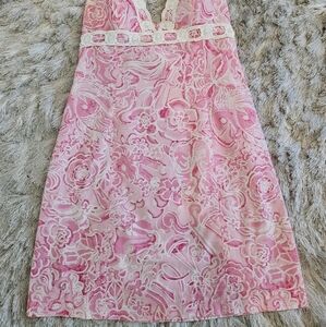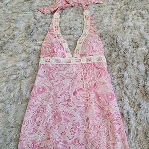 EUC Lilly Pulitzer Cocoa Lace Trim Dress. Pink Halter Dress
