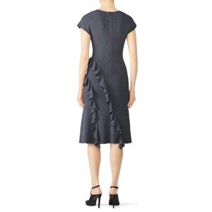 Rent the Runway previously worn piece, but in excellent condition! Cascading ruffles add fun feminine frill to this figure-hugging Sachin & Babi dress. Heather grey knit (63% Rayon, 37% Nylon). Hourglass. Short sleeves. V-neckline. Exposed back zipper closure. Size small.