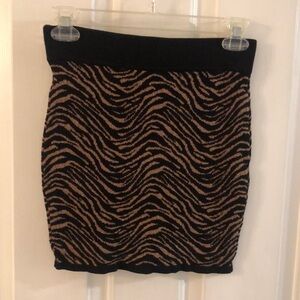 Forever 21 Sweater Skirt, Size small, Black & Gold colors,, Sparkly Metallic gold design throughout, Just adorable, With 1-7/8” thick waistband & 1/2” bottom hem, Measuring approximately 13” at waist & 15” long, NWOT