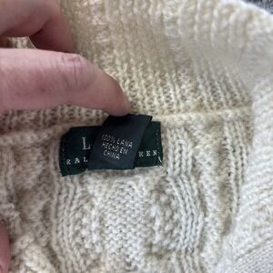 Ralph Lauren LRL Fisherman Cardigan Mens Medium Cable Knit Chunky Wool Zip Ivory