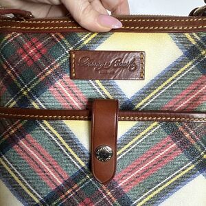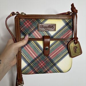 DOONEY & BOURKE Leather Letter Carrier Bag Tartan Print Crossbody Preppy y2k