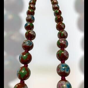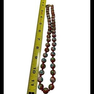 CHINESE EXPORT CLOISONNÉ ANTIQUE NECKLACE LARGE BEADS FLORAL DESIGN RED ENAMEL