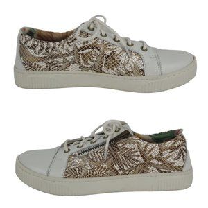 BORN Women's Tamara Sneakers 7M White Leather Lace Up Side Zipper Embossed