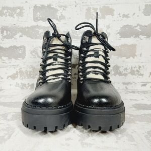 NEW Marc Fisher LTD Black Leather Nairy Lace Up Hiking Boots E581