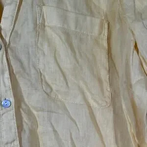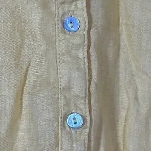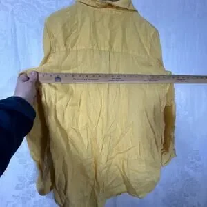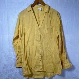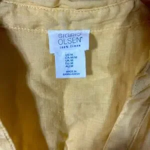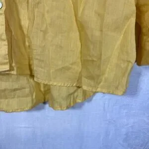 Sigrid Olsen Medium Button Up Shirt Yellow Linen Long Sleeve Roll Tab Boho