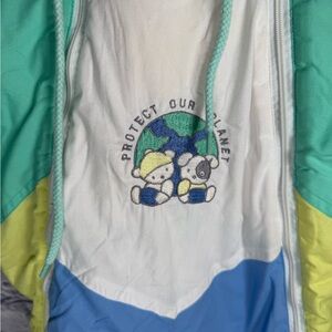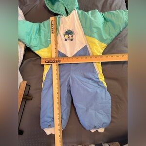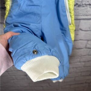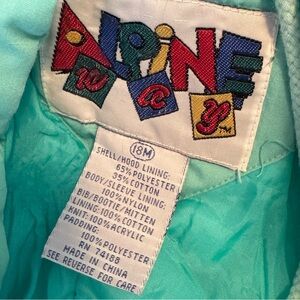 Vintage 90s Colorblock Kids Snowsuit Alpine mint blue and white size 18 months. Normal signs of wear- no holes. Measurements shown.