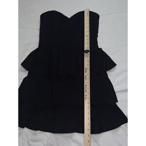 Amanda Uprichard Mini Dress Size M Black Strapless Tiered Ruffle Cotton Blend.