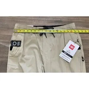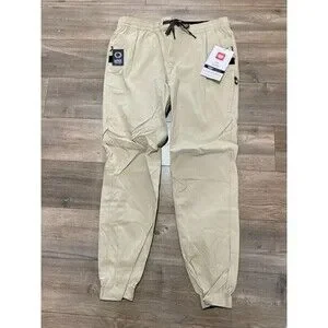 686 Everywhere Pant Mens L Stretch Beige Slim Jogger Zipper Pockets Drawstring