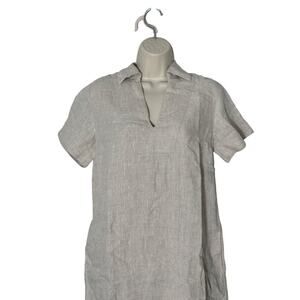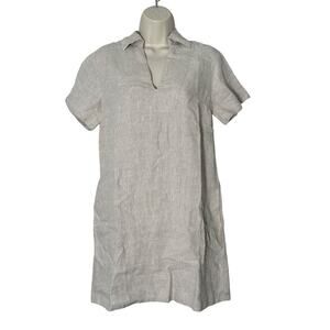 Crafted of our 100 percent lightweight linen, this breezy mini dress has a point collar at the open V-neckline and an off-body, relaxed fit. It's versative enough to pop on and go with any pair of sandals or sneakers.