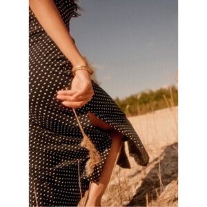 SEZANE Black & White Polka Dot Printed Open Back Organic Cotton Luce Midi Dress