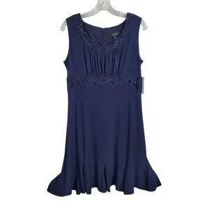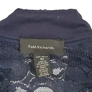 R&M Richards Size 10 Dress Jacket Set Event Formal Floral Lace Sequin Navy NWT