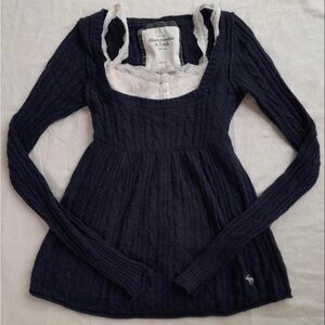 Y2K Vintage Abercrombie & Fitch Babydoll Sweater Top Sz L Cable Knit Bella Swan