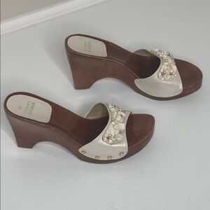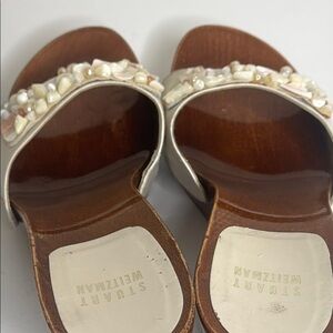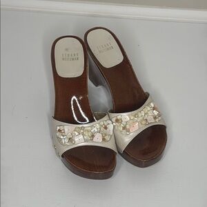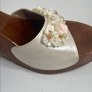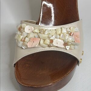 Stuart Weitzman Wood Sole Cream Shells Beads Y2K Beach Resortwear Spain Sandals