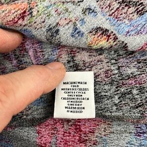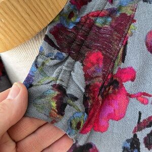 EUC Habitat dark grey shirt dress w lg red pink floral print 1/2 button front