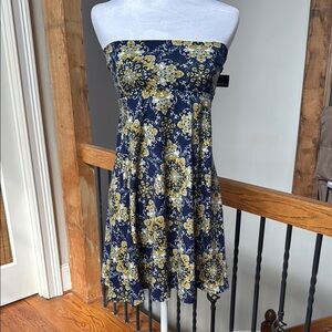 COLETTE Navy Blue Yellow medallion print Floral Skirt or strapless mini dress